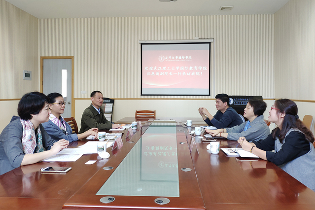 11月21日上午9:30,武汉理工大学国际教育学院副院长汪惠菊、招生办公室主任梁卫平、招生办公室副主任张铭一行来访我院,双方围绕办学工作展开交流。
