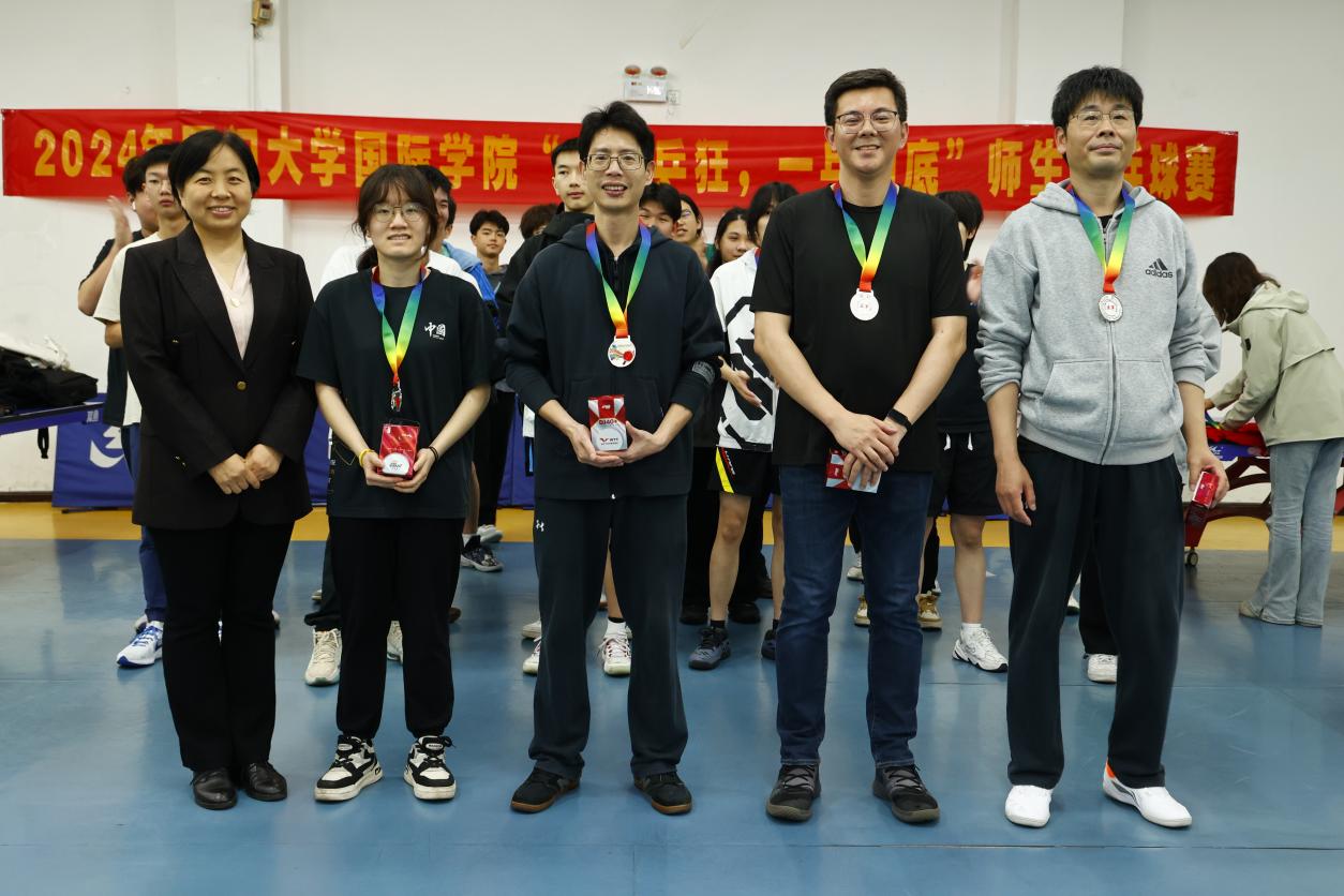 男队亚军——教工队伍(谢帆、苏璟、蒋贞星)、女子单打亚军(敖辰宇)