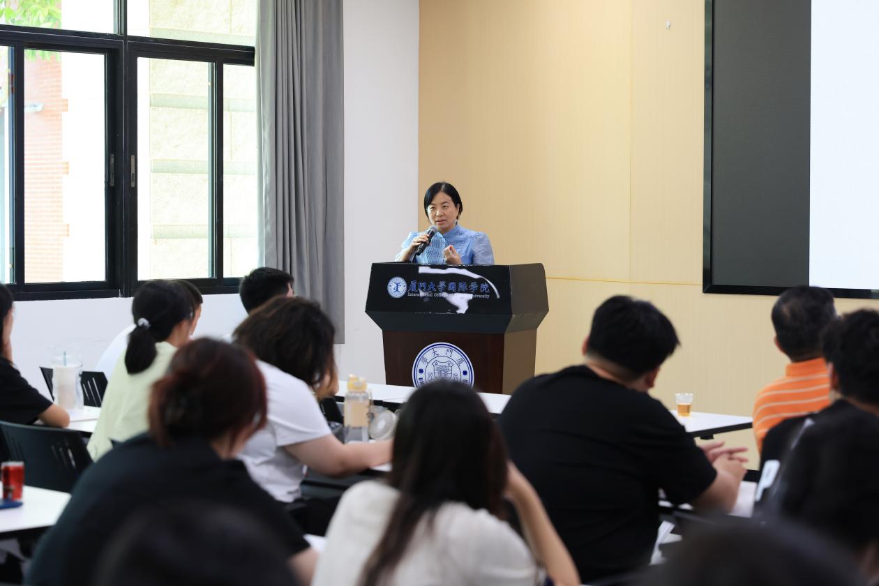 为深入推进文明社区建设,引导学生面向未来海外求学生活,养成良好的生活习惯,涵养文明行为,培养热爱劳动、尊重劳动的意识,提升自主生活能力,从留学归国的优秀前辈和师长身上汲取经验,进一步明确留学深造的方向和意义,学院举办策划了“我的留学生活”系列茶话会沙龙。10月15日,首场讲座在漳州校区4号楼101会议室举办,由院长陶涛教授与同学们进行分享交流。讲座由学院党委副书记马向华主持。